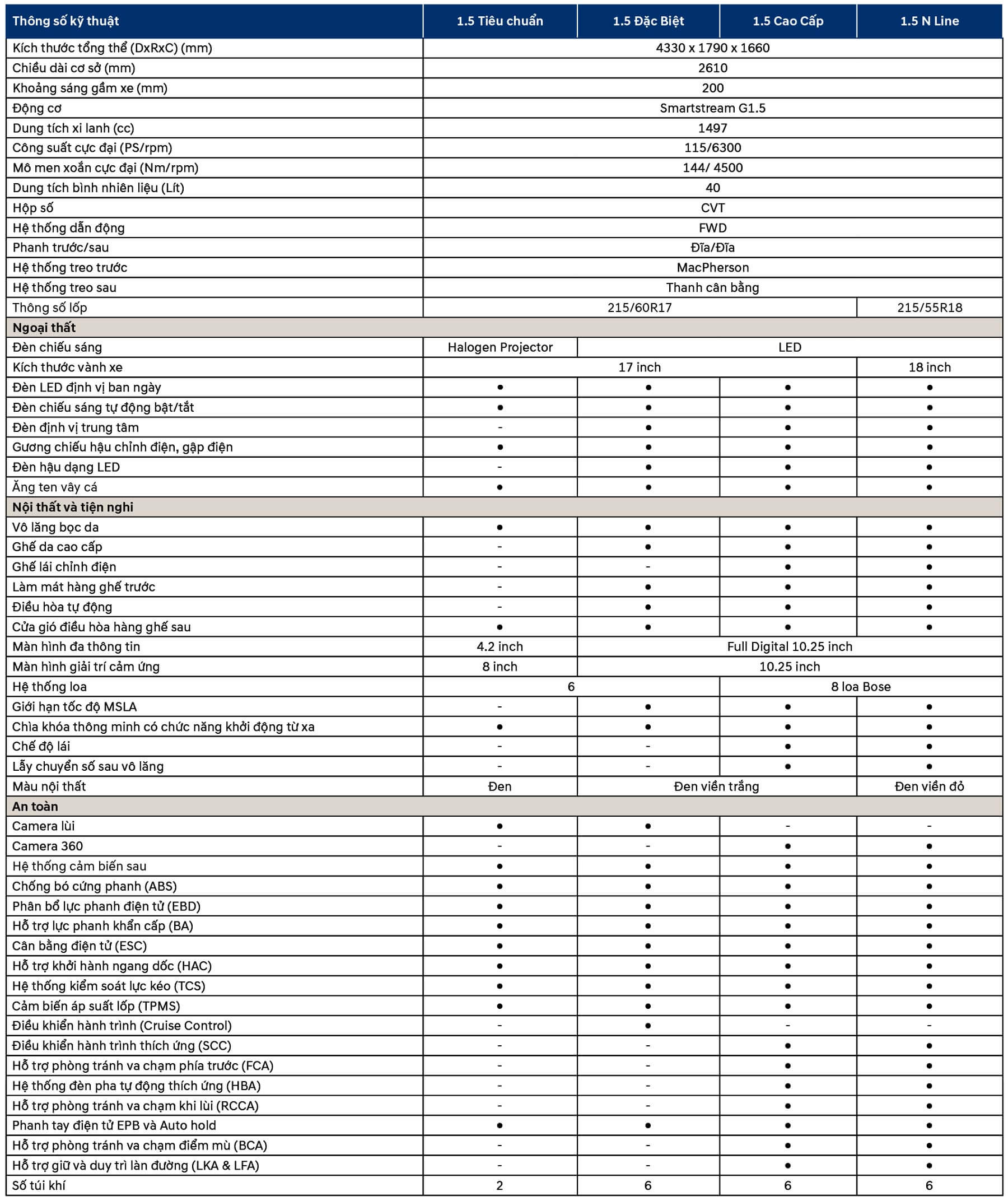 • Hyundai Creta 1.5L N Line: 715.000.000 VNĐ